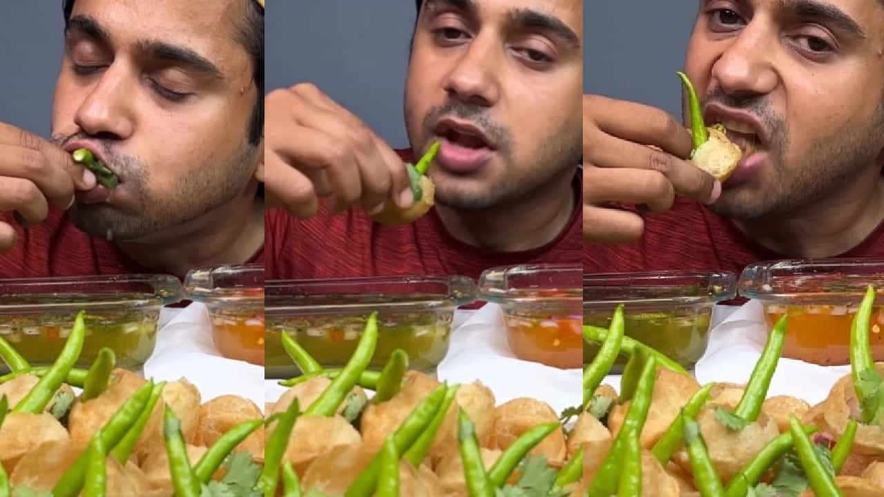 video : त्याने मिरचीच्या पाणीपुरी एकामागोमाग गटवल्या, पाहून कानातून येईल धूर