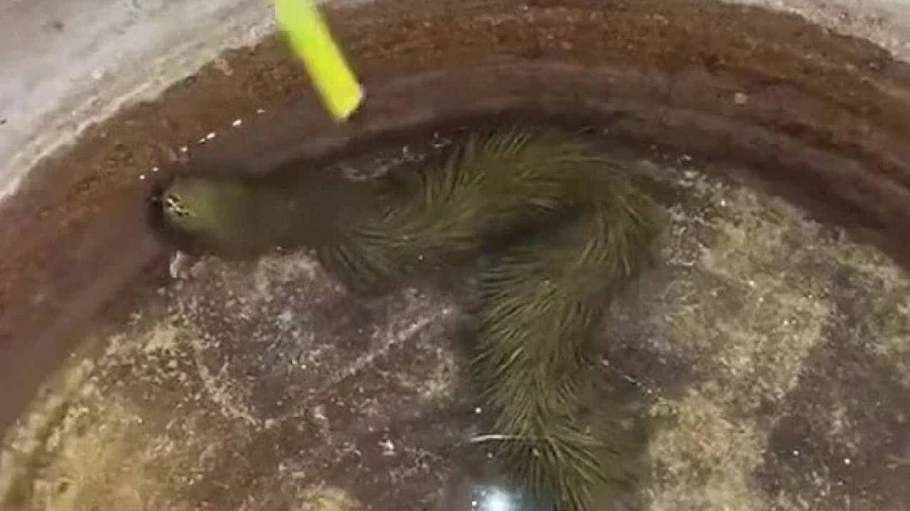 एका घराशेजारील पाणथळ जागेवरती हा रहस्यमय साप दिसला आहे. हा साप सध्या एका जारमध्ये ठेवण्यात आला आहे. साप जवळपास दोन फूट लांब असून या सापाला खाद्य म्हणून मच्छी खायला घातले गेले आहे.