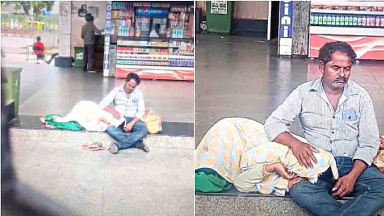 कर्नाटकातील बस स्थानकावरील व्हायरल झालेला या व्हिडीओमध्ये दोघं पती पत्नी बसस्थानकाच्या प्लॅटफॉर्मवर बसलेली दिसून येत आहे.