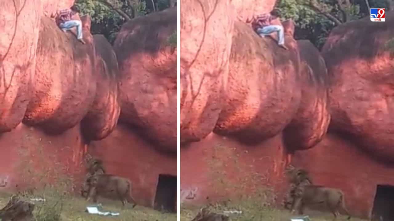 Video: सिंहाच्या पिंजऱ्याच्या दगडावर जाऊन बसला, सिंह पकडणार तोच…पाहा हादरवणारा व्हिडीओ!