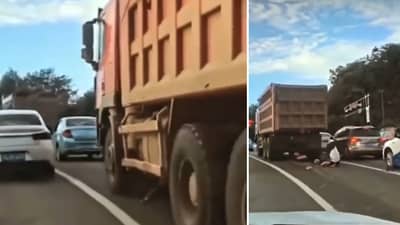 ती मुलगी खूप नशीबवान होती, जिची स्कूटी ट्रकखाली आली पण ती मुलगी टायरच्या खाली अडकली नाही. ती ट्रकच्या मध्यभागी पडली.जेव्हा ट्रक तिच्या अंगावरून गेला तेव्हा तिला जराही खरचटलं नाही.