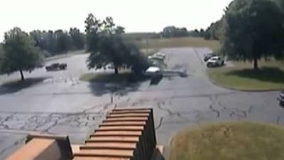 खाली येताच ते पार्किंग एरियातील एका मोठ्या झाडाला धडकतं आणि पार्क केलेल्या गाड्यांच्या शेजारीच जाऊन कोसळतं.