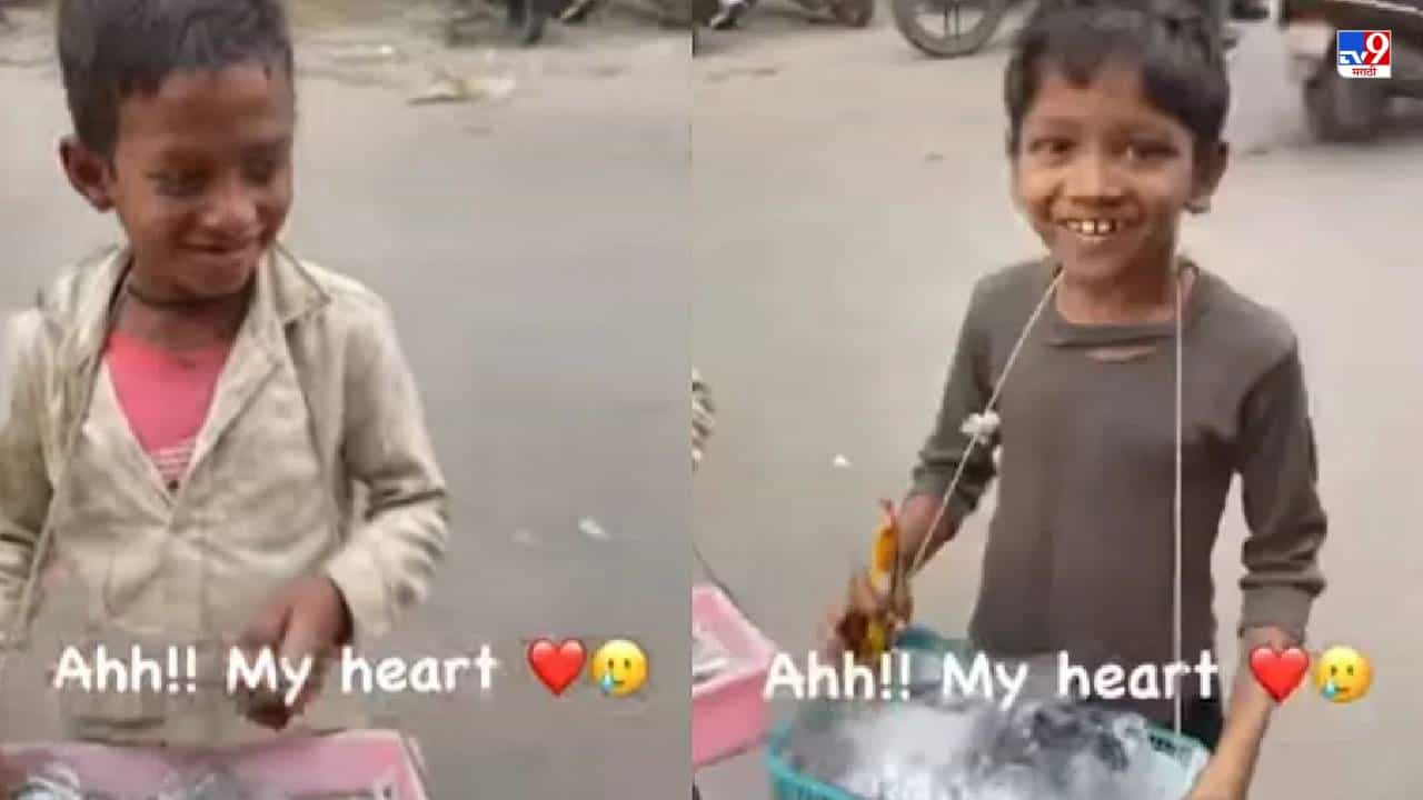 मुलं हे देवाचं रूप असतात, ही म्हण तुम्ही ऐकलीच असेल. सोशल मीडियावर तुम्ही असे अनेक व्हिडिओ पाहिले असतील, ज्यामध्ये मुलांचा निरागसपणा नक्कीच दिसला असेल. त्याचा स्वभाव लोकांची मने जिंकतो. आता व्हायरल होत असलेला हा व्हिडिओ पाहा. व्हिडिओमध्ये तुम्ही पाहू शकता की, दोन मुले रस्त्यावर टोपल्यांमध्ये कृत्रिम दागिने विकताना दिसत आहेत. त्याच्या गळ्यात प्लास्टिकची टोपली लटकलेली आहे. व्हिडिओमध्ये तुम्ही पाहू शकता की, ब्लॉगर मुलांना चॉकलेट देत आहे. यावर मुलांच्या चेहऱ्यावर तरंगणारे हसू तुमचा दिवस उजाडण्यासाठी पुरेसे आहे.