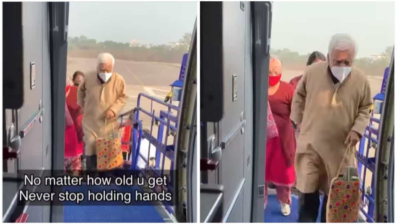 व्हिडिओमध्ये तुम्ही पाहू शकता, की वृद्ध जोडपे एकमेकांचा हात अशाप्रकारे पकडून आहेत, की नवजात जोडपे एकमेकांचा हात धरत आहे. व्हिडिओमध्ये दोघेही विमानात प्रवेश करताना दिसत आहेत. या दरम्यान, ते खूप हळू हळू पुढे जात आहेत. हा व्हिडिओ स्नेहा यादव नावाच्या यूझरने आपल्या इन्स्टाग्राम अकाउंटवरून शेअर केला आहे.