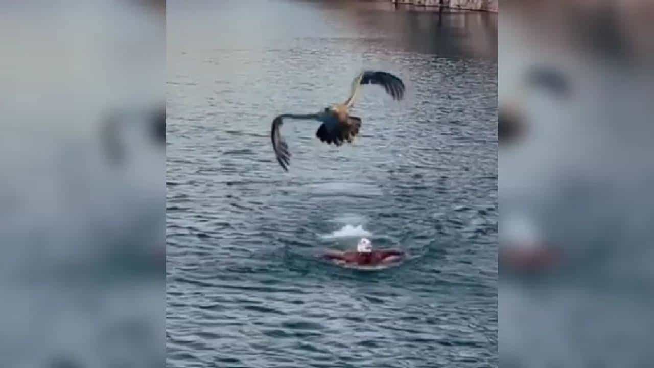 आनंदाने पोहत असताना या दरम्यान त्याच्या पाठीमागून एक गरुड येतो. तो हल्ला करण्यासाठी त्या माणसाच्या वर फिरू लागतो. ती व्यक्ती पोहताना पाण्याच्या पृष्ठभागावर येताच गरुड आपल्या धारदार चोचीने हल्ला करण्याचा विचार येतो. परंतु अचानक त्याचे काय होते माहित नाही आणि तो त्या माणसाला इजा न पोहोचवता परत येतो.