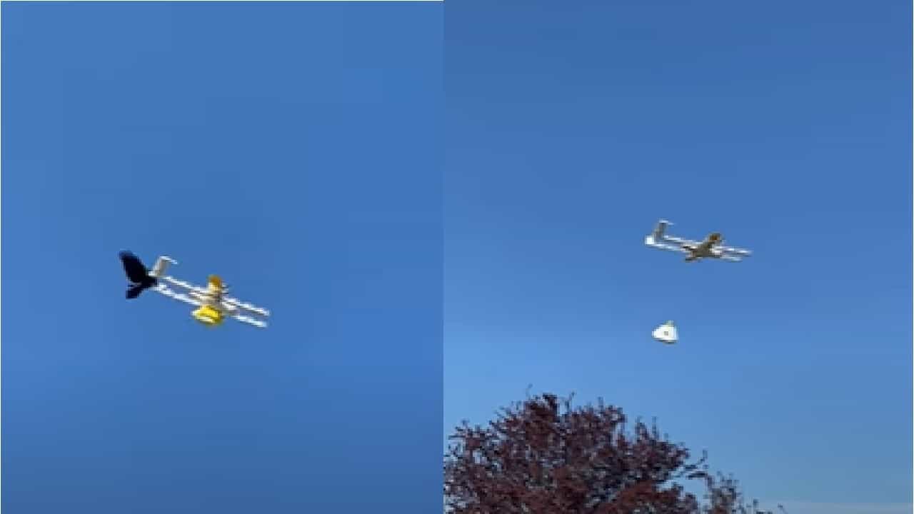 Video | फूड डिलिव्हरी करणाऱ्या ड्रोनवर कावळ्याचा हल्ला, हवेतील युद्ध कॅमेऱ्यात कैद