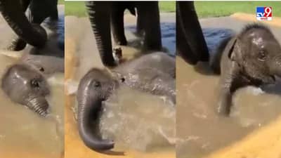 सोशल मीडियावर असे काही व्हिडिओ आहेत जे एकदा पाहिल्यानंतर मन भरत नाही आणि पुन्हा पुन्हा पाहावेसे वाटते. अलीकडच्या काळात असाच एक सुंदर व्हिडिओ लोकांमध्ये चर्चेचा विषय बनला आहे, जो पाहून तुमचा दिवस आनंदात जाईल.अनेकदा मुलं पाणी दिसलं की, त्याच्याशी खेळायला लागतात, फक्त माणसांची मुलंच असं करतात असं नाही. तर प्राणीही हेच करतात. असाच काहीसा प्रकार आजकाल समोर आला आहे. ज्यामध्ये छोट्या हत्तीची कृती तुम्हाला खूप गोंडस वाटेल. व्हिडिओमध्ये छोटा गजराज पाण्याचा मनसोक्त आनंद घेत आहे. ( animal video Baby elephant enjoy their Water bath in lake after seeing this video people Say they remember shinchan)