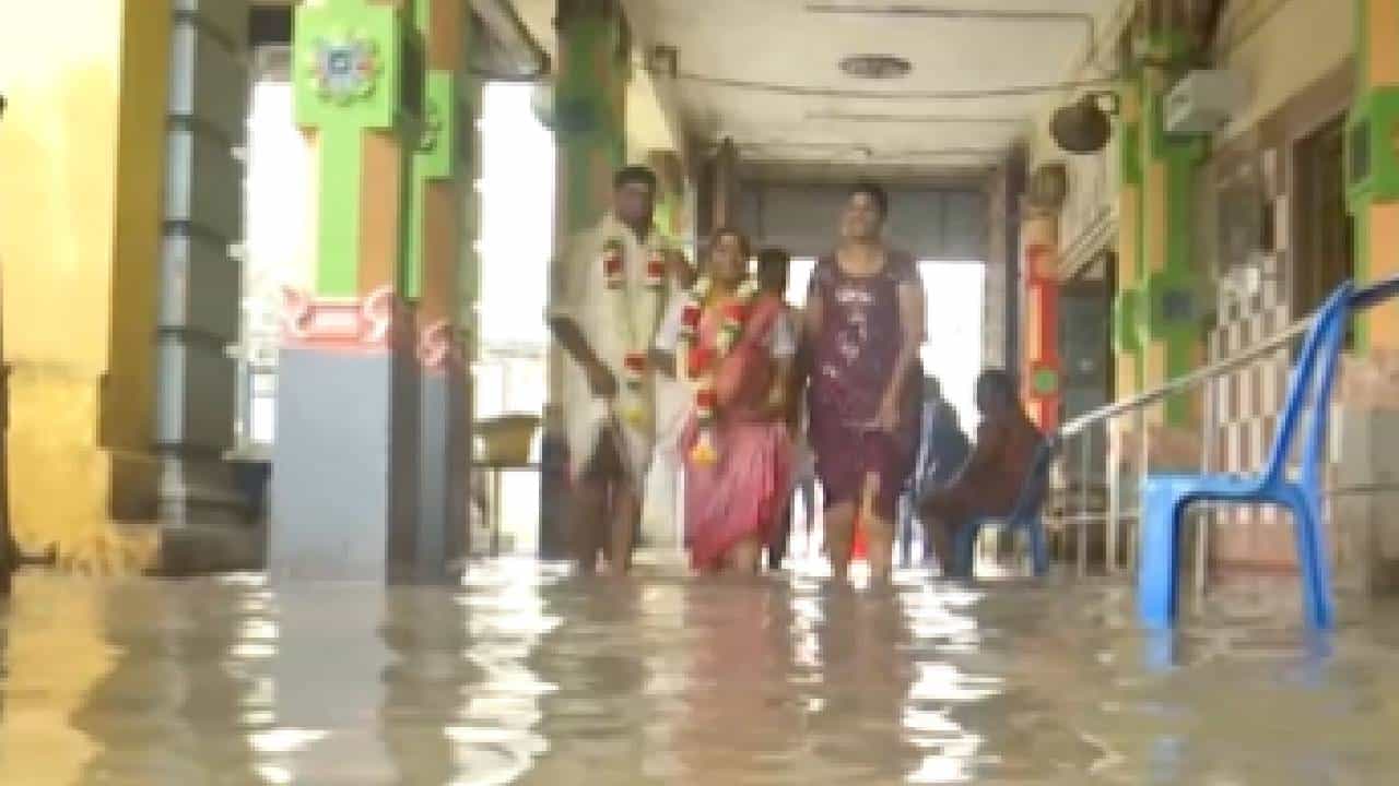 एएनआय या वृत्तसंस्थेने सोशल मीडिया प्लॅटफॉर्म ट्विटरवर हा व्हिडिओ शेअर केला असून कॅप्शनमध्ये लिहिले आहे की, चेन्नईतील पुलियांथोप भागातील अंजिनियर मंदिरात आज पाणी साचल्यामुळे पाच लग्नांना उशीर झाला. काही महिन्यांपूर्वी लग्न ठरलेल्या जोडप्यांना मंदिरात पाणी साचल्यामुळे रांगा लावाव्या लागल्या.