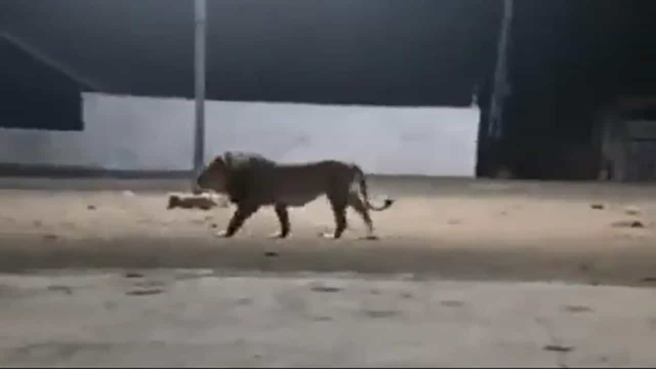 VIDEO | गावात बिनधास्त फिरत होता सिंह , 4 कुत्र्यांनी मिळून त्याचा पाठलाग केला, पुढे काय घडलं पाहा व्हिडीओत