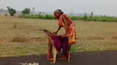 #WATCH | A senior citizen, Surya Harijan walks many kilometers barefoot with the support of a broken chair to reach a bank to collect her pension in Odisha’s Jharigaon