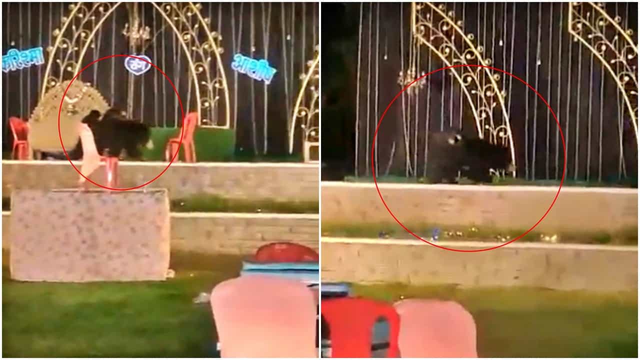 Wild animals Video : आपण अनेकदा वन्य प्राणी निवासी भागात फिरत असल्याच्या घटना ऐकल्या आहेत. असे व्हिडिओ सोशल मीडियावर (Social Media) खूप पाहिले गेले आहेत, पण जर अस्वल (Bear) आपल्या मुलांसह लग्न समारंभात (Marriage) पोहोचला तर?