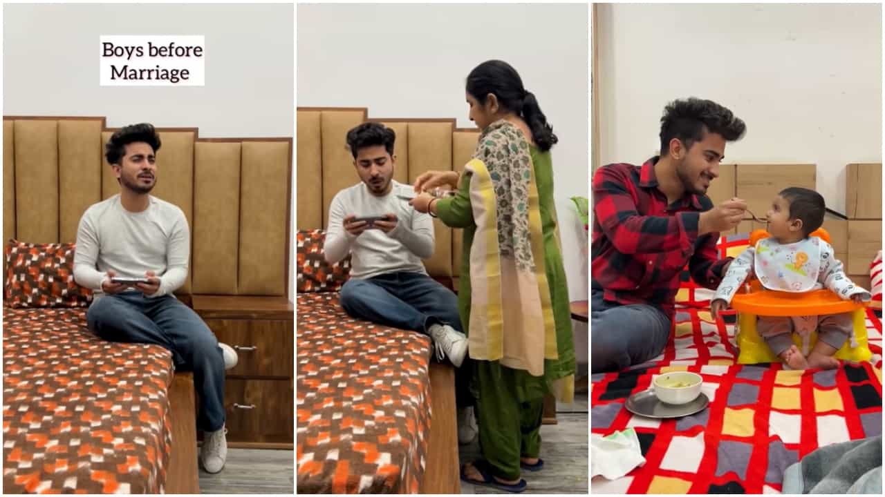 Funny video : मौसम लग्नसराईचा आहे. यासंबंधीचे व्हिडिओ सध्या चांगलेच व्हायरल होत आहेत. त्यात काही व्हिडिओ असे असतात, की लग्नाच्या आधी आणि लग्नाच्या नंतरचा फरक दाखवणारे असतात. तर काही व्हिडिओ लग्नाच्या आधी कसे रिलॅक्स लाइफ (Relax) असते आणि लग्नानंतर कसे तणावाचे किंवा हेक्टिक (Hectic) स्वरुपाचे असते हे दाखवणारे असतात. अर्थात हे सर्व विनोदी (Comedy) शैलीने केलेले असते. हलक्या फुलक्या मिनिटभरात सर्व सांगितले असल्याने सोशल मीडियावरचे यूझर्स ते पाहतात, कारण त्यांचाही वेळ वाया जात नाही आणि मनोरंजनही होते. असाच एक व्हिडिओ सध्या व्हायरल झालाय. लग्नाच्या आधी त्याचे कसे लाड होतात आणि लग्नानंतर कशी कामं करावी लागतात हे मजेशीर स्वरुपात व्हिडिओत दाखवले आहे.