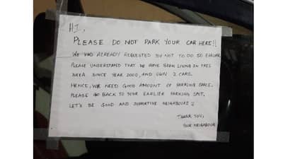या चिठ्ठीत पुढे लिहिले आहे की, आम्ही तुम्हाला असे न करण्याची विनंती आधीच केली होती. कृपया समजून घ्या की आम्ही 2000 पासून या भागात राहत आहोत आणि आमच्याकडे 2 कार आहेत. त्यामुळे पार्किंगसाठी अधिक जागेची गरज आहे. कृपया आपल्या पूर्वीच्या पार्किंगमध्ये परत जा. चांगले आणि सहकार्य करणारे शेजारी बनूया,’ असे म्हणत त्यांनी ‘आपला शेजारी’ अशी स्वाक्षरी केलीये.