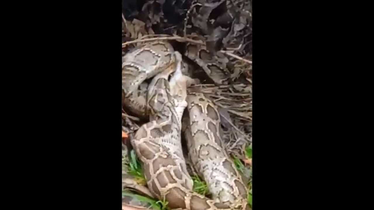 (big python swallowing cat video went viral on social media)