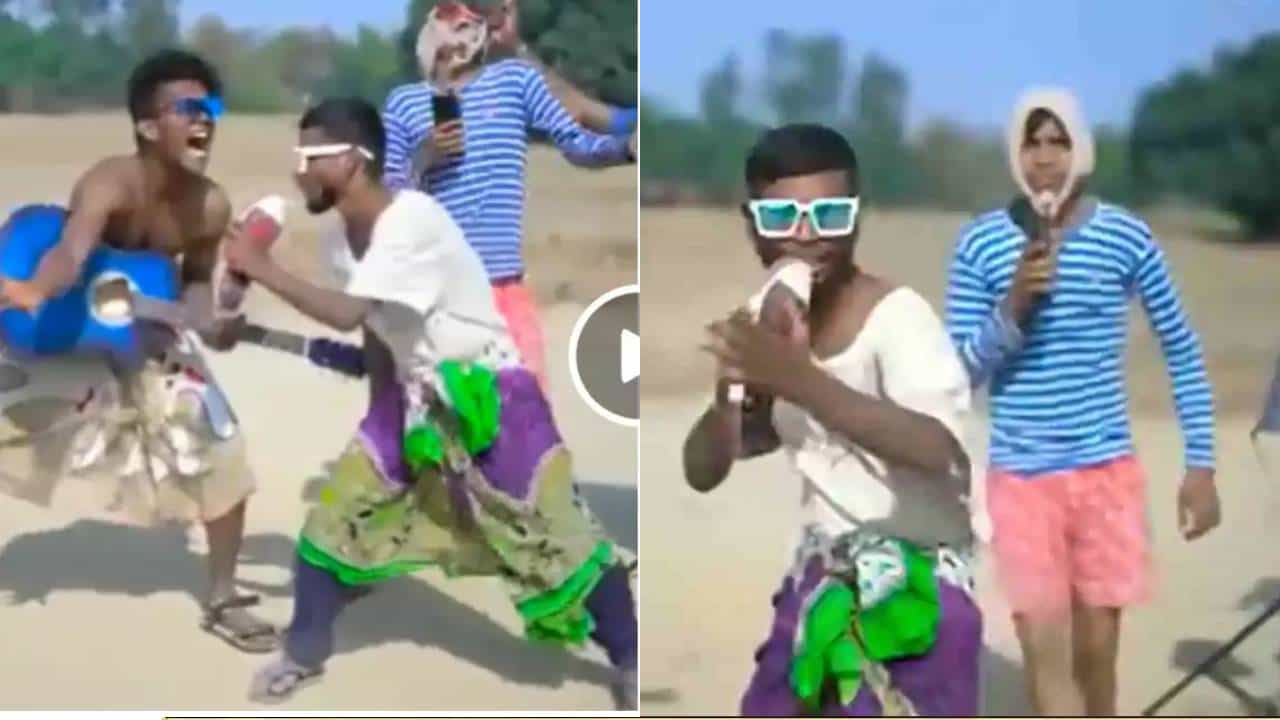 एका मोकळ्या मैदानात पाच तरुण म्यूझिक बँडसारखे उभे आहेत. एकाच्या हातात गिटार आहे. तर दुसऱ्याने ड्रम म्हणून स्टिलच्या बादल्या लावल्या आहेत. कुणी कंगव्याचा माईक बनवला आहे. तर कुणी पाण्याची बॉटल माईक म्हणून वापरली आहे. काही जण हाफ चड्डीत आहेत. काही लुंगीवर आहेत. मुख्य गाणं गाणाऱ्याने जीन्सवर लुंगी गुंडाळली आहे. सर्वांच्या डोळ्यावर जत्रेत मिळतात तसे रंगीबिरंगी चष्मे आहेत. सर्वजण रॉकस्टार सारखं परफॉर्म करत आहेत. त्यानंतर हे गाणं सुरू होतं.