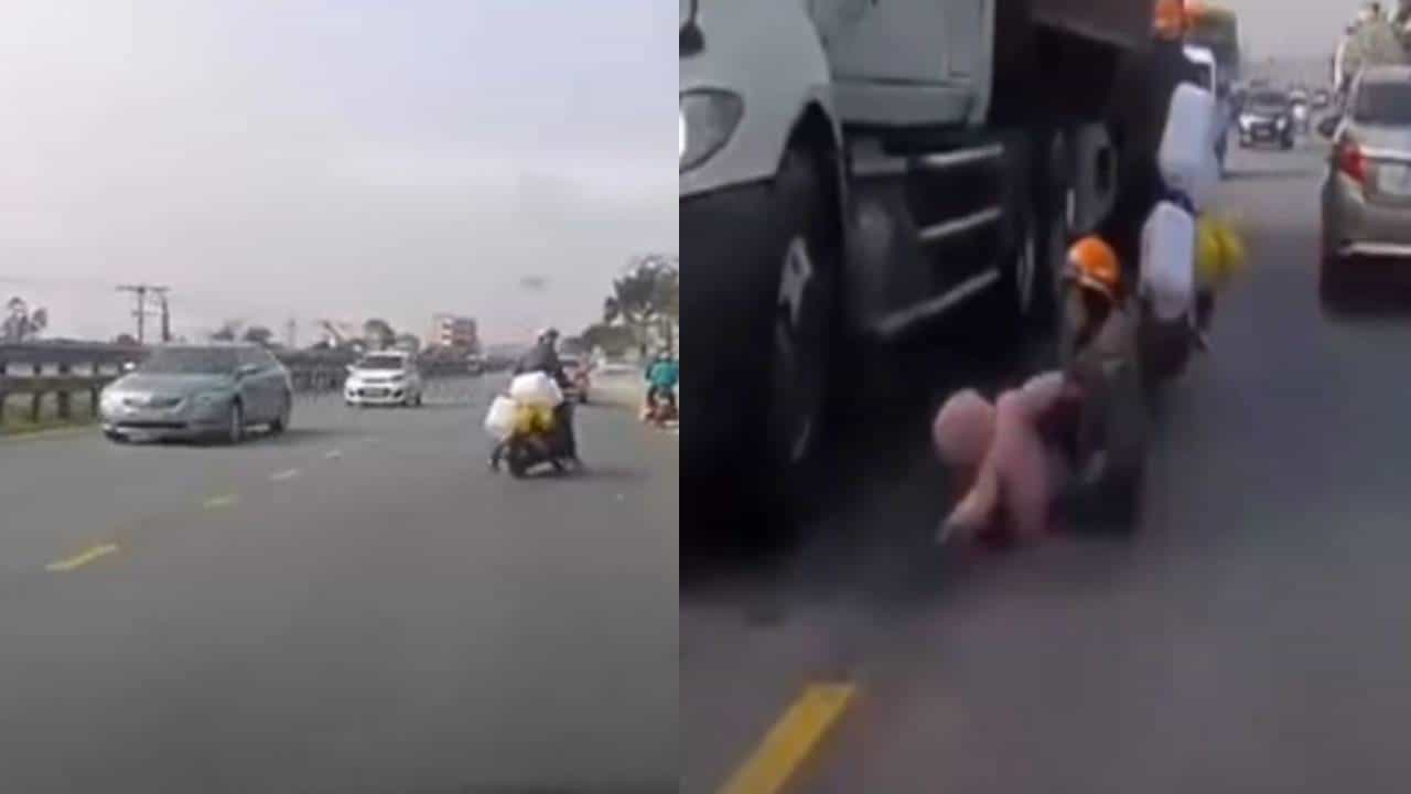 सध्या सोशल मीडियावर एक व्हीडिओ व्हायरल होत आहे. यात एक व्यक्ती गाडी चालवताना दिसत आहे . त्याच्या एक महिला एका लहान मुलीला घेऊन बसली आहे. अचानक मागून एक कार स्कूटरच्या अगदी जवळून जाते. त्याचा या गाडीला धक्का लागतो. त्यामुळे या गाडीवरून ही महिला आणि लहानगी पडते. इतक्यात समोरून एक ट्रक येतो. अन् या दोघी ट्रकच्या चाकाखाली येता येता थोडक्यात बचावतात. पण हा 12 सेकंदाचा व्हीडिओ पाहताना अंगावर काटा येतो. ही भयानक दृश्य डोळ्यांना बघवत नाहीत.