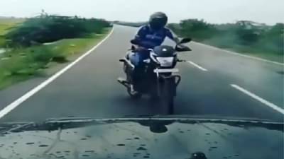 मात्र, यावेळी कार चालवत असताना समोरुन एक दुचाकीस्वार येताना दिसतोय. त्याने हेल्मेट घातलेले असून तो दुचाकी वेगात चालवतो आहे. या तरुणाने त्याच्या समोर असलेल्या एका कारला मागे टाकण्याचा प्रयत्न केला आहे. मात्र, यावेळी व्हिडीओतील कार दुचाकीस्वाराच्या समोर आली आहे. यावेळी वेग जास्त असल्यामुळे हा तरुण दुचाकीचा तोल सांभाळू शकलेला नाही. परिणामी या तरुणाची दुचाकी घसरून थेट कारवर आदळली आहे.