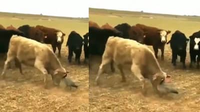 एका छोट्या पक्ष्याने गायींच्या कळपाची अवस्था वाईट केलीये. या छोट्याशा पक्षाने गाईंना तिथून पळून जाण्यास भाग पाडले. एवढ्या मोठ्या प्राण्याला त्याने आपल्या हुशारीने पळवून लावले. व्हिडीओ पाहून तुम्ही त्याच्या धाडसाचे कौतुक कराल. व्हिडिओमध्ये तुम्ही पाहू शकता की काही गायी शेतात उभ्या आहेत आणि त्यांच्यामध्ये एक छोटा पक्षी देखील आहे. या दरम्यान एक गाय त्या पक्ष्याला घाबरवण्याचा आणि मारण्याचा प्रयत्न करते, पण पक्षी घाबरण्याऐवजी गायींना घाबरवतो. तो इतकं धाडस दाखवतो की तो गायींना मागे हटायला भाग पाडतो आणि शेवटी त्यांना तिथून हाकलून देतो.
