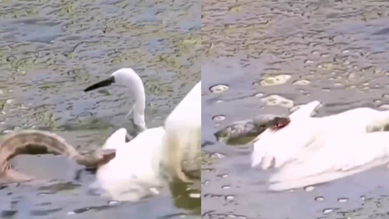 व्हायरल क्लिपची सुरुवात एका पाण्यातील सापाने एका पांढऱ्या पक्ष्याचे पंख दातांनी पकडल्यापासून होते. स्वत:ला वाचवण्यासाठी पक्षी वळतो आणि आपल्या चोचीने सापाला इजा करण्याचा प्रयत्न करतो. काही सेकंदानंतर पक्षी पुन्हा सापावर हल्ला करतो, ज्यामुळे त्याच्या पंखांना इजा होते. पक्ष्याच्या पंखातून रक्त वाहताना दिसते आणि साप पुन्हा त्या पक्ष्याला पकडण्याचा प्रयत्न करतो परंतु त्याच्या प्रयत्नात अपयशी ठरतो. साप पक्ष्याला जखमी अवस्थेत सोडतो. पुढच्या फ्रेममध्ये दोघेही तलावाच्या काठावर येताना दिसत आहेत. जखमी पक्ष्याला हालचाल करताना उभे राहण्यास थोडा त्रास होतोय.