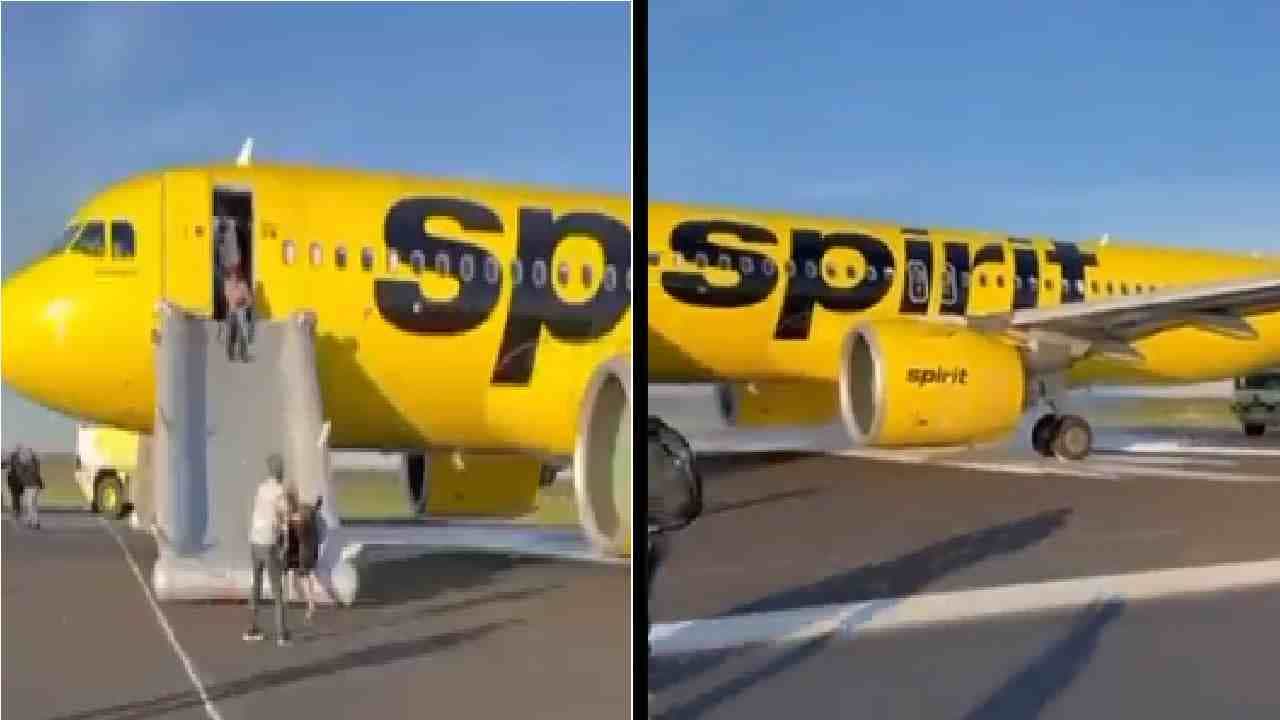 Passengers evacuate Spirit Airlines flight NK3044 on the runway at Atlantic City Airport after the engine caught fire following a bird strike. No injuries reported. https://t.co/0Fe4JyEGfT pic.twitter.com/oMQr79j6Cg