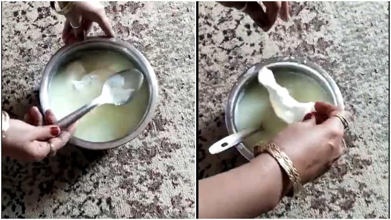 हा व्हिडिओ मध्य प्रदेशची राजधानी भोपाळ येथील आहे. भोपाळच्या अशोका गार्डन परिसरातील एका महिलेने हा व्हिडिओ सोशल मीडियावर शेअर केला आहे. दूध उकळल्यानंतर फुटल्याचे व्हिडिओत दिसत आहे. दूध फुटल्यानंतरही, बहुतेकवेळा त्याचा वापर करता येतो. हाच विचार करून या महिलेने भांड्यात हात घालून फाटलेले दूध काढण्याचा प्रयत्न केला. मात्र एकतर ते दूध खूप पातळ होते आणि त्यातला फाटलेल्या दुधाचा भाग हा पूर्ण च्युइंगमसारखा झालेला होता, जो की तसा असता कामा नये.
