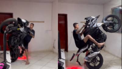 मुंबई: सोशल मीडियाच्या दुनियेत जर एखादी गोष्ट सर्वात जास्त फेमस असेल तर ती म्हणजे स्टंट व्हिडिओ. इंटरनेटवर जे काही येतं त्यात सगळ्यात अग्रेसर असतात स्टंटचे व्हिडीओ. स्टंट हे सर्वाधिक लोकांचे लक्ष वेधून घेणारे व्हिडिओ आहेत. सध्या असाच एक व्हिडिओ समोर आला आहे. जो सगळ्यांना आवडत आहे. खऱ्या अर्थाने पाहिलं तर हल्ली तरुणांमध्ये स्टंटची क्रेझ खूप पाहायला मिळत आहे. स्टंट करून सोशल मीडियावर प्रसिद्ध व्हावं असं प्रत्येकाला वाटतं, पण स्टंट करणं हा काही पोरखेळ नाही, त्यासाठी भरपूर सराव करावा लागतो. पण काही लोक असे असतात जे कुठेही काहीही करून स्टंट करायला सुरुवात करतात. आता पाहा हा व्हिडिओ यात हा मुलगा आपल्या खोलीत बाईकवर स्टंट करताना दिसतोय.