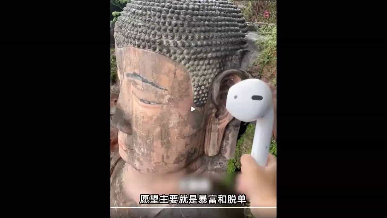 भगवान बुद्धांच्या 71 मीटर उंचीच्या पुतळ्यासमोर पूजा केली आणि मूर्तीच्या कानाजवळ मोठा एअरपॉडसारखा स्पीकर ठेवला आणि त्यांच्यापर्यंत आपला संदेश पोहोचवला. यामुळे देव त्याचं नीट ऐकून घेऊ शकेल, असं ते म्हणाले.