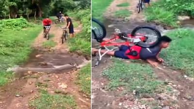 एका ठिकाणी रस्ता चांगला नसून तिथं पाणी वाहत असल्याचं व्हिडिओमध्ये दिसत आहे. ते पाहिल्यावर तिथं खड्डा असेल असं वाटत नाही, परंतु प्रत्यक्षात तिथं मोठे खड्डे पडले आहेत. यादरम्यान एक मुलगा वेगानं सायकल चालवत तिथं येतो आणि त्याच वेगानं खड्डा ओलांडण्याचा प्रयत्न करतो, पण कदाचित त्याला तिथं खड्डा आहे, हे माहीत नसेल. त्याची सायकल खड्ड्यात पडताच त्याचा तोल गेला आणि तो सायकलसह पडला. तो ज्या प्रकारे पडला, त्यामुळे त्याला खूप दुखापत झाली असावी, असं वाटतं.