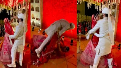 लग्नसोहळा सुरु आहे. नवरदेव नवरी वरती स्टेजवर उभे आहेत. त्यांचा फोटोशूट सुरु आहे. आता तुम्हाला तर माहितच आहे फोटो काढायचे म्हणजे किती प्रकारचे पोज द्यावे लागतात. या पोज देताना आणि त्यांच्या पोज बघताना खूप मजा येते. व्हिडीओ मध्ये नवरदेव नवरीला गोल फिरवतो आणि फोटोसाठी पोज द्यायला जातो. पोज देताच नवरदेव धाडकन खाली पडतो, तो त्याच्यासोबत नवरीला सुद्धा घेऊन खाली पडतो. बघताना खूप हसू येईल असा हा व्हिडीओ आहे.