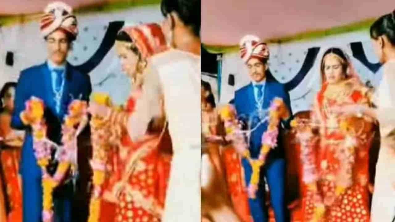 व्हायरल होत असलेल्या व्हिडीओमध्ये नवरी आणि नवरदेव एकमेकांसमोर उभे राहिले आहेत. ते एकमेकांच्या गळ्यात वरमाला टाकण्यासाठी थांबल्याचे दिसतेय. नवरदेव जरी खूश असला तरी नवरी मात्र नाराज आहे. नवरी तिच्या हातामध्ये असलेल्या वरमालेला खराब करत आहे. तसेच वरमलेवर लावलेल्या फुलांना ती तोडून टाकत आहे. हा सगळा प्रकार कॅमेऱ्यात कैद करण्यात आलाय.