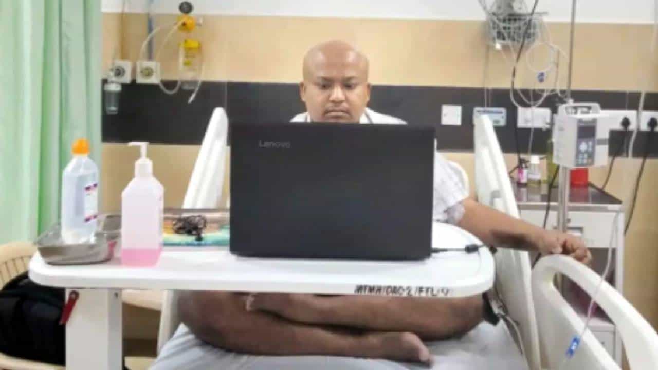 एका व्यक्तीचा हॉस्पिटलच्या बेडवर बसून मुलाखत देतानाचा एक फोटो सध्या व्हायरल होत आहे. अर्श नंदन प्रसाद या व्यक्तीने आपल्या लिंकइनवर अकाऊंटवरून हा फोटो शेअर केला. त्याला त्याने जे कॅप्शन दिलं आहे ते सकारात्मक आहे.