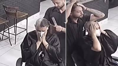 ज्यावेळी सलूनमध्ये महिलेचे केस एका हातामध्ये तरुणाने पकडले, त्यानंतर तरुणाने एका हातामध्ये असलेले स्ट्रीमर सुरु केले. त्यानंतर केसं पाहून महिलेच्या डोळ्यात पाणी आले. परंतु संपुर्ण केस कापून झाल्यानंतर महिला अधिक सुंदर दिसत असल्याचे सोशल मीडियावर अनेकांनी सांगितले आहे.