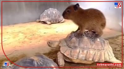 एक व्हीडिओ सध्या सोशल मीडियावर चर्चेत आहे. या व्हीडीओमध्ये कॅपीबारा आणि कासव पाहायला मिळतंय. त्यांचा हा व्हीडिओ सध्या सोशल मीडियावर चांगलाच व्हायरल होत आहे. या व्हिडिओमध्ये कॅपीबारा कासवावर बसलेला दिसतोय.कासव आरामात चालताना दिसतोय. तर कॅपीबारा त्याच्यावर बसला आहे. हा व्हीडीओ खूपच गोंडस आहे.त्यामुळे सोशल मीडियावर फॉरवर्ड केला जात आहे.