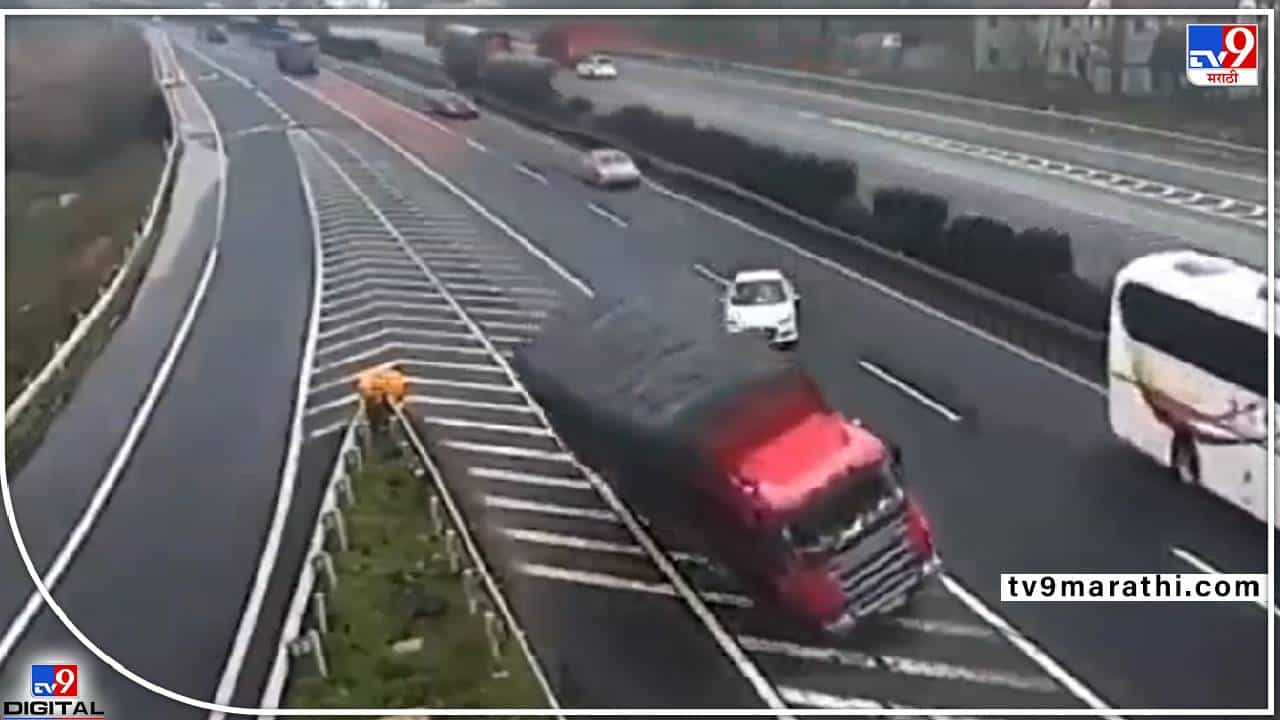 या व्हिडीओमध्ये असं पाहायला मिळतंय की, महामार्गावर एक पांढऱ्या रंगाची कार फिरत आहे मात्र अचानक गाडीचा चालकाला लक्षात येतं की आपल्याला दुसरीकडे जायचंय मग तो गाडीला ब्रेक मारतो. मागून भरधाव वेगाने ट्रक येत असतात. ट्रकचालक गाडी वाचवण्याचा प्रयत्न करतो. इतक्यात त्याचा ट्रक उलटतो, पण तो गाडीला काहीही होऊ देत नाही. गाडी वाचते, चालकही वाचतो.