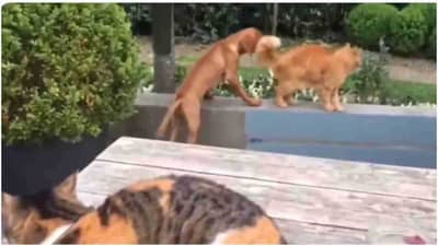 व्हिडीओमध्ये तुम्ही पाहू शकता की जेव्हा कुत्रा मांजरापासून धोक्यात येतो, तेव्हा दुसरी मांजर बेंचवरून उडी मारते आणि बाल्कनीवर उभ्या असलेल्या मांजरीवर हल्ला करते. ती त्याच्या चेहऱ्यावर कडक पंजे मारते आणि त्याला जमिनीवर सोडते. मांजरीनं दाखवलेल्या या प्रतिक्रियेमुळे, कुत्रा या घटनेतून थोडक्यात बचावला.