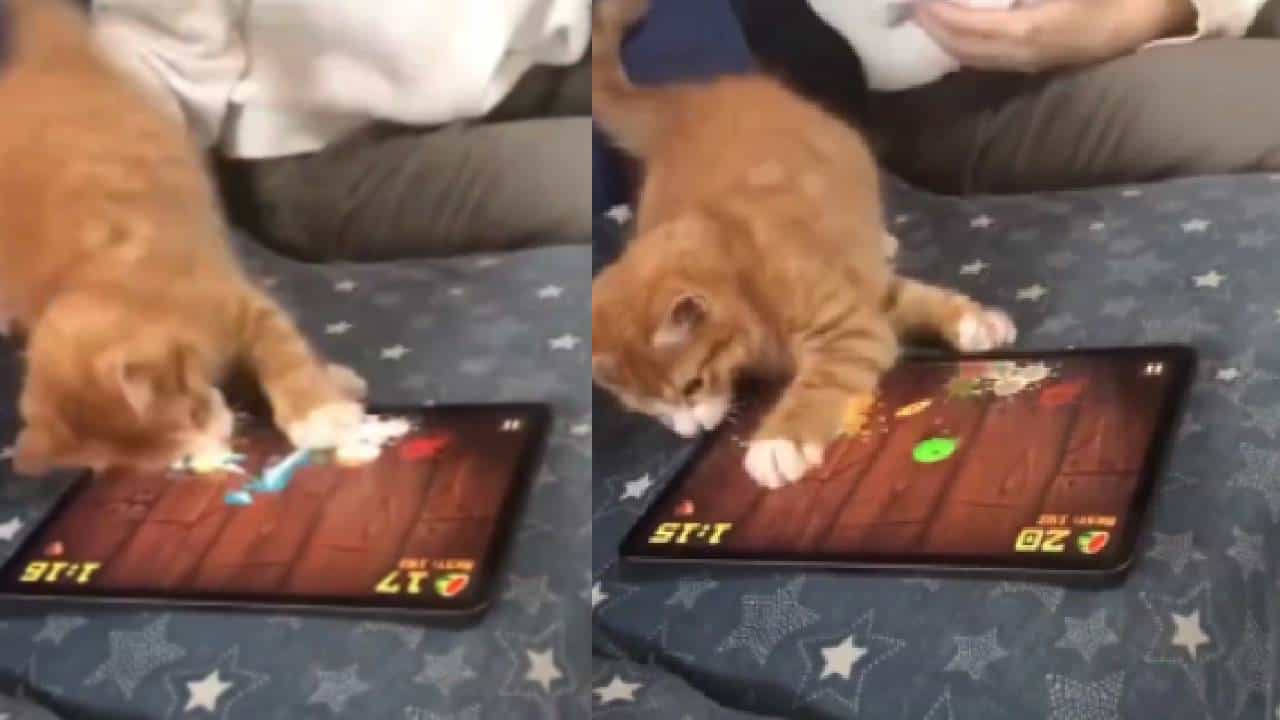 Video : मांजरीच्या पिल्लाला लागलाय गेमचा नाद!, सात सेकंदाचा व्हीडिओ तुमचं निखळ मनोरंजन करेल…