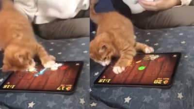 मुंबई : सोशल मीडियावर (Social media) विविध गोष्टी व्हायरल होत असतात. प्राण्यांचे व्हीडिओ तर आवडीने पाहिले जातात. असाच एक हृदयस्पर्शी व्हीडिओ व्हायरल होत आहे. ज्यामध्ये मांजरीचं (Cat Viral Video) पिल्लू पाहायला मिळतंय. हे मांजरीचं पिल्लू टॅब्लेटसोबत खेळताना दिसतंय. एक मुलगी शेजारी बसली आहे आणि शेजारी ठेवलेल्या टॅबवर हे मांजरीचं गोंडस पिल्लू गेम खेळतंय. खेळता-खेळता हा लहानगा जीव सोफ्यावरून खाली पडतो. या केवळ सात सेकंदाच व्हीडिओ सध्या सोशल मीडियावर चर्चेचा विषय बनला आहे. या व्हीडिओला दीड लाखांहून अधिकांनी लाईक केलंय.