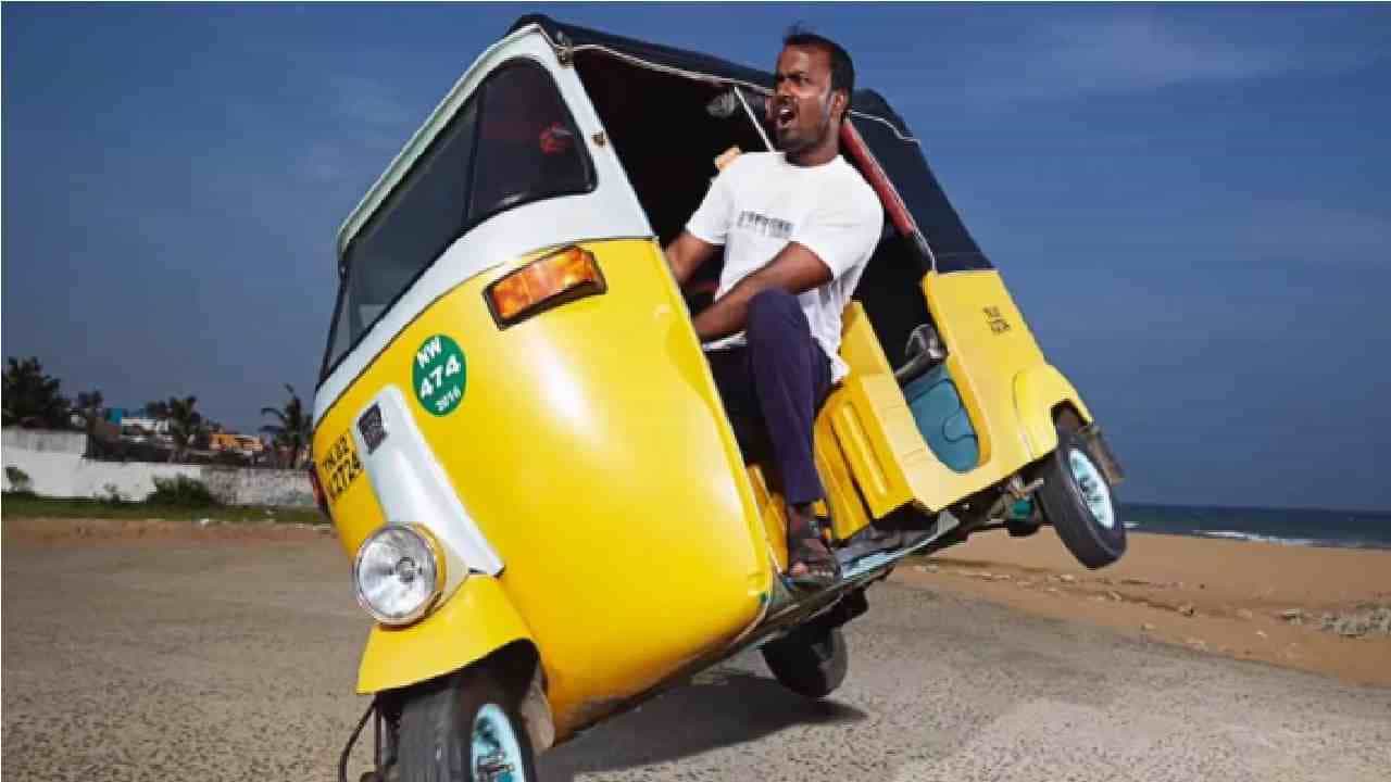 (chennai rickshaw driver Jagathish Mani drove rickshaw on two wheeler record noted by guinness book of world record)