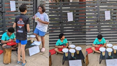 The highlight of my day was coming across these dumdums on the streets of Indiranagar who were selling lemon water because they were broke and bored. Best way and age to learn the art of selling. Love it. @peakbengaluru @NammaBengaluroo pic.twitter.com/Rs1swiFaOh