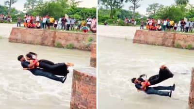 सोशल मीडिया आणि इंटरनेटवर वेगाने व्हायरल झालेल्या व्हिडिओमध्ये दिसतं की, एक जोडपं कालव्याच्या काठावर उभं आहे. आजूबाजूला खूप लोकही आहेत. तेवढ्यातच ते जोडपं एकमेकांना मिठी मारतात आणि फिल्मी शैलीत कालव्यात उडी मारतात आणि दोघेही पाण्यात पडताच व्हिडिओ तिथेच संपतो.