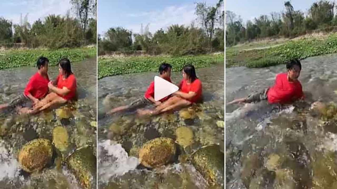 या व्हिडीओत दोघेजण नदीच्या मध्यभागी बसले दिसत आहेत. अभिनेत्री शिल्पा शेट्टी हिच्या डायलॉग्सवर तरुणी लिपसिंक करत आहे.