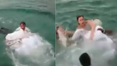 मुंबई : प्रत्येकाला आपल्या लग्नात काय तरी वेगळं असावं असं वाटतं. त्यामुळं प्रत्येक जोडपं त्यासाठी वेगळं कायतरी करु यासाठी प्लॅन तयार करतात. काहीवेळा अशा पद्धतीचं नियोजन अनेकांच्या अंगाशी आल्याचं पाहायला मिळालं आहे. सध्या अनेकजण लग्नाच्या आगोदर प्री-वेडिंग शूट करतात. सध्या एक व्हिडीओ व्हायरल झाला आहे, तो पाहून अनेकांना धक्का बसला आहे. प्री-वेडिंग शूट (wedding Shoot) करण प्रत्येकाला शक्य होतं असं नाही. शुट करीत असताना अनेकांना धक्का बसला आहे. सोशल मीडियावर सध्या एक व्हिडीओ चांगलाचं व्हायरल (VIDEO VIRAL) झाला आहे. त्यामध्ये एक जोडपं मोठ्या धक्क्यातून बाहेर आलं आहे. प्री-वेडिंग शूट करण्यासाठी एक जोडपं नदीच्या पाण्यात उतरलं आहे. पहिल्यांदा मुलगा पाण्यात उतरला आहे, त्यानंतर एक ती वधू पाण्यात उतरली आहे. त्यांना पाण्याचा अंदाज नसल्यामुळं काय परिस्थिती निर्माण होते हे तुम्हाला व्हिडीओत (trending video) पाहायला मिळत आहे.