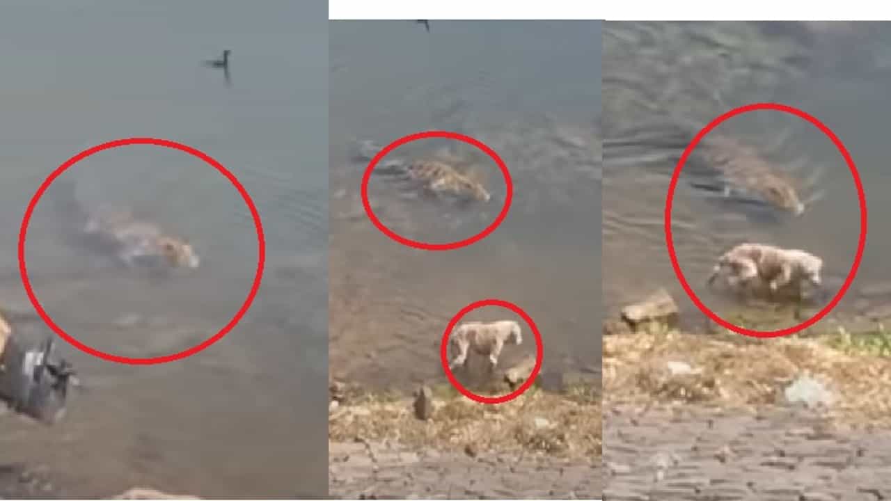 व्हिडीओमध्ये मगरीने एका कुत्र्याची मोठ्या शिताफीने शिकार केली आहे. शिकारीचा हा व्हिडीओ पाहून नेटकरी थक्क झाले आहेत. (crocodile attacks dog video goes viral)