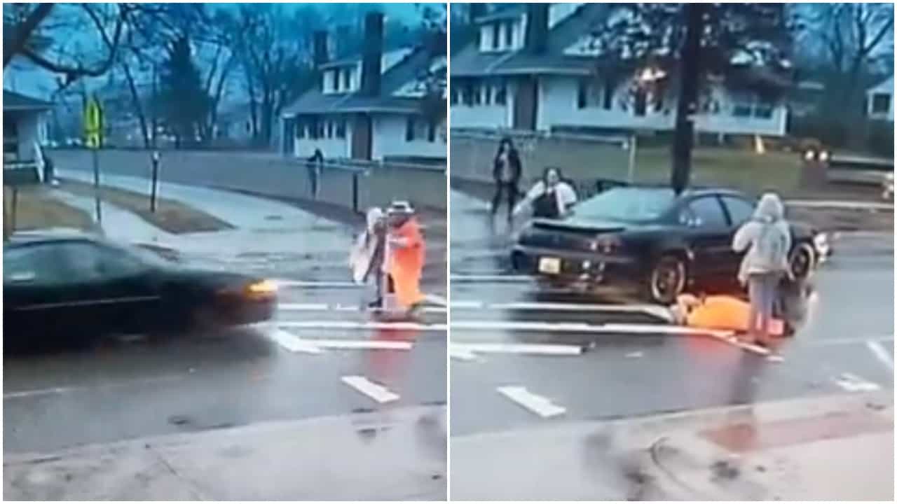 कार थांबत नाही आणि गुडीयर, ज्या पोलीस अधिकारी म्हणून काम करतात. व्हिडिओमध्ये विद्यार्थ्याला त्याच्या मार्गावरून ढकलताना दिसतात. केशरी कपडे परिधान केलेल्या गुडीअरला वेगवान कारने धडक दिली आणि जमिनीवर पडल्याचे व्हिडिओमध्ये दिसत आहे. विद्यार्थ्याला कोणतीही इजा झाली नाही.