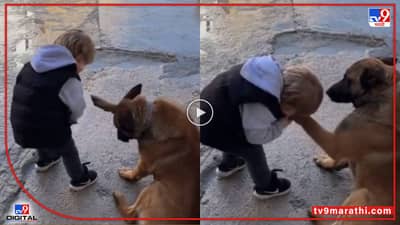 मुंबई : सध्या सोशल मीडियावर विविध व्हीडिओ व्हायरल होत असतात. यात प्राणी आणि चिमुकल्यांची दोस्ती तर सोशल मीडियावरचा चर्चेचा विषय. सध्या असाच एक चिमुकला आणि त्याच्या दोस्ताचा म्हणजेच एका कुत्र्याचा व्हीडिओ (little boy and dog viral video) सोशल मीडियावर व्हायरल होत आहे. हा व्हीडीओ खूपच क्युट आणि भावनिक आहे, त्यामुळे हा व्हीडिओ सध्या चर्चेचा विषय बनला आहे. यात या दोघांचं बॉन्डिंगही दिसून येतंय. सोशल मीडियावर व्हायरल झालेल्या या व्हीडिओमध्ये एक कुत्रा रस्त्यावर भिंतीला टेकून बसलेला दिसत आहे. त्याच्या समोर एक लहान मुलगा आहे. या मुलाने त्याचा हात या कुत्र्याच्या पुढे केला. पण त्यावर कुत्रा लगेच रिअॅक्ट झाला नाही. थोडा वेळ घेत पुढच्या क्षणी त्याने त्याच पंजा या चिमुकल्यापुढे केला. हा लहानगा खुश झाला त्याने तो पंजा हातात घेतला. अन् त्यावर किस केलं. त्यांचा हा व्हीडिओ सध्या सोशल मीडियावर चर्चेत (viral video) आहे.