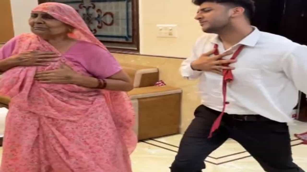 तरुण आपल्या आजीसोबत मजेदार डान्स करतोय