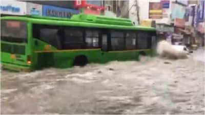 मुंबई : महाराष्ट्रात जवळपास सगळीकडेच पावसाने हजेरी लावली आहे. औरंगाबादसारख्या जिल्ह्यात तर दरड कोसळण्याची घटना घडली आहे. सध्या फक्त महाराष्ट्रच नाही तर देशातील अनेक भागात जोरदार पाऊस बरसतोय. मुसळधार पावसामुळे अनेकांची धांदल उडाली आहे. या पावसामुळे जनजीवन विस्कळीत झाले असून त्याची भीषणता दाखवणारे अनेक व्हिडीओ व्हायरल होत आहेत. दिल्लीमध्ये पावसाची काय स्थिती आहे, हे सांगणारा असाच एक व्हिडीओ सध्या समोर आला आहे. या व्हिडीओमध्ये रस्त्यावर चालणारी बस चक्क जहाजासारखी पाण्यात तरंगत आहे. (delhi facing heavy rainfall but became sunmarine video went viral on social media)