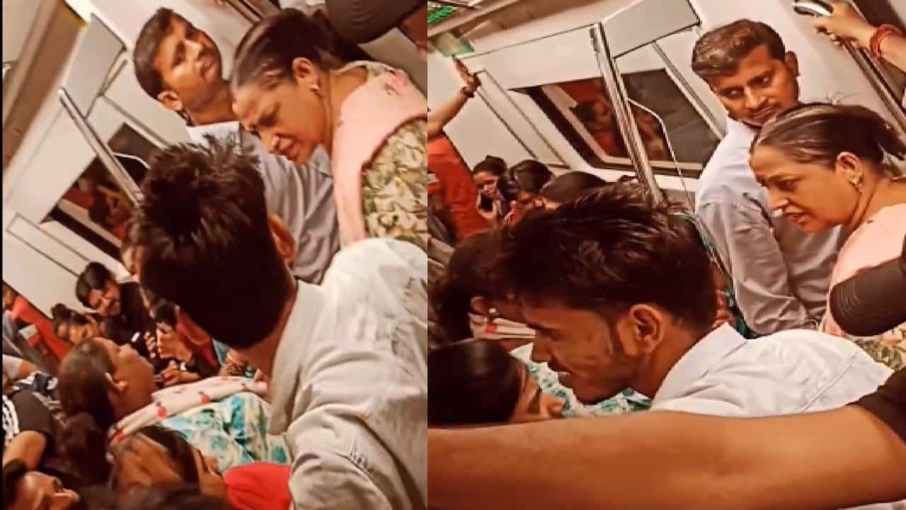 हे काय चाललय? कधी गाल पकडते, कधी केस, आंटी भडकल्या, Metro मधला Video