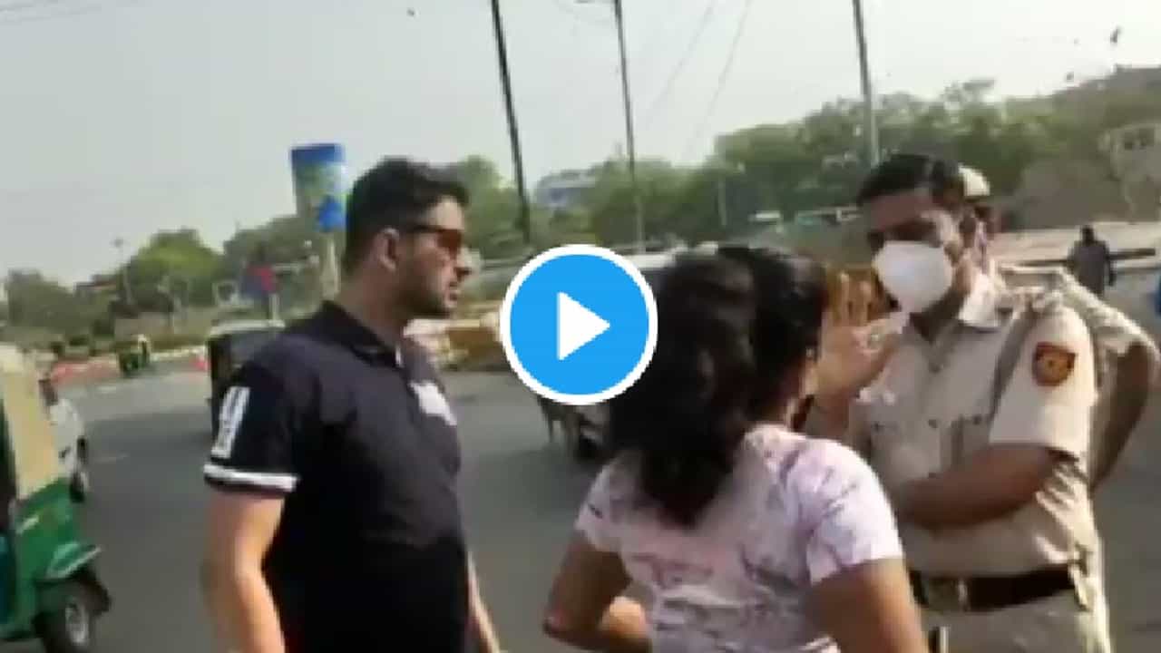 (Delhi Police ask women about mask and Corona law she spoke rudely with police and said will kiss husband)