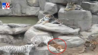 सध्या सोशल मीडियावर असाच एक व्हिडिओ सोशल मीडियावर व्हायरल होत आहे, जो पाहून तुम्हालाही आश्चर्य वाटेल. खरं म्हणजे सोशल मीडियावर एक व्हिडिओ पोस्ट करण्यात आला आहे. ज्यात अनेक वाघ एकत्र बसलेले आहेत. या वाघांमध्ये कुत्राही दिसतो. हा व्हिडिओ पाहिल्यानंतर तुम्ही असा विचार करत असाल की आता कुत्र्याचं आता काम झालं. तो काही वाचत नाही. पण थांबा, तुम्ही थोडी घाई केली. कोणत्याही निष्कर्षावर जाण्यापूर्वी, हा व्हिडिओ थोडा काळजीपूर्वक पाहा, जेणेकरून तुम्हाला संपूर्ण प्रकरण समजेल.